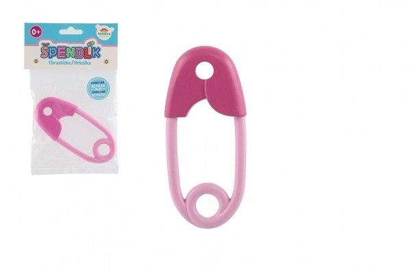 Chrastítko špendlík plast 12cm růžové 12x19cm v sáčku 0+