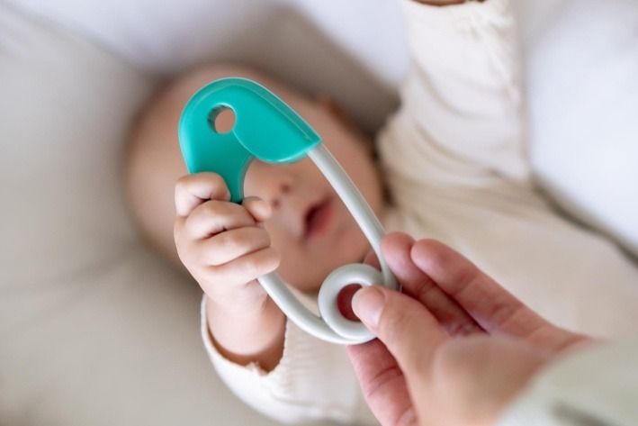 Chrastítko špendlík je klasická dětská hračka, která Vašemu dítěti nesmí chybět. Je ideální pro první pokusy miminka držet hračku. Snadno se uchopí, je velmi lehké a kontrastní provedení miminka jistě zaujme. Podporuje rozvoj jemné dětské motoriky a smyslového vnímání. Díky malým kuličkám uvnitř jemně chrastí.