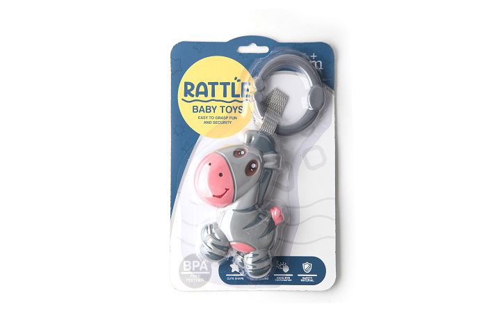 Chrastítko zebra. Rozměry 14,5x3x21,5 cm.