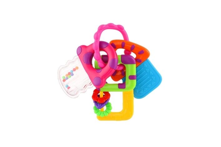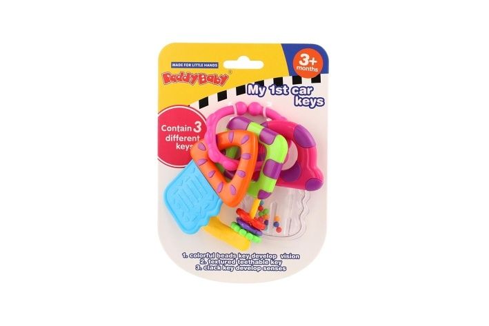 Tato sada předstíraných klíčů zahrnuje kousací hryzátko na klíče, dva klíče jako chrastítka. Pohodlné spojení vám umožní připojit hračky ke kočárku nebo tašce, když vyrazíte se svým oblíbeným společníkem na cesty.
