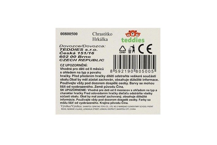 Lehké a bezpečné chrastítko, které je ideální pro nejmenší děti. Kombinuje pevný plast a měkký silikon, který jemně masíruje dásně při prořezávání zoubků. Chrastící zvuk stimuluje sluch a zaujme pozornost miminka. Díky kompaktní velikosti se snadno drží i v malých ručičkách.