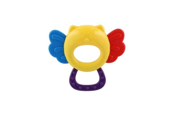 Roztomilé chrastítko ve tvaru sovy potěší každé miminko! Lehký a bezpečný plastový materiál je ideální pro první úchopy, zatřesením vydává jemný zvuk a okraj slouží i jako kousátko pro zklidnění dásní.
