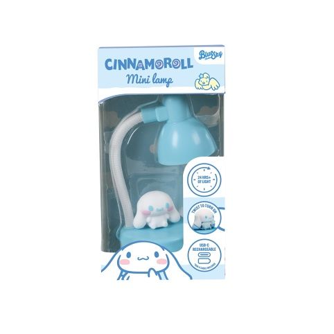 Miniaturní USB lampička Cinnamoroll DPL6 je praktickým a dekorativním doplňkem inspirovaným populárním motivem Hello Kitty, konkrétně postavičkou Cinnamorolla. Tato lampička je vyrobena převážně z plastu s modrým podstavcem a stínidlem, které je připojeno k ohýbatelné bílé noze, umožňující nastavení směru osvětlení podle potřeby. Na podstavci je umístěná malá figurka Cinnamorolla v bílé barvě s výraznými modrými oči a růžovými tvářemi, která dodává lampičce osobitý a roztomilý vzhled. Lampička je vybavena LED světlem, které poskytuje příjemné a dostatečně silné osvětlení pro čtení nebo práci v blízkosti. Napájení probíhá přes USB-C port, což zajišťuje snadné a rychlé dobíjení bez nutnosti výměny baterií. Podle označení na obalu může lampička svítit až 24 hodin na jedno nabití, což z ní činí vhodnou volbu i pro noční osvětlení nebo dlouhodobé použití bez připojení k elektrické síti. Balení lampičky je atraktivně navrženo v tématu Cinnamoroll s modrobílým designem doplněným ilustrací postavičky, která jasně komunikuje téma produktu. Na obalu jsou také uvedeny základní funkce výrobku, jako je otočný mechanismus pro zapnutí a USB-C nabíjení. Tento produkt spadá do kategorie licenčních dárků a ostatních hraček, což potvrzuje jeho zaměření na sběratele i fanoušky značky Hello Kitty a japonských kawaii motivů.