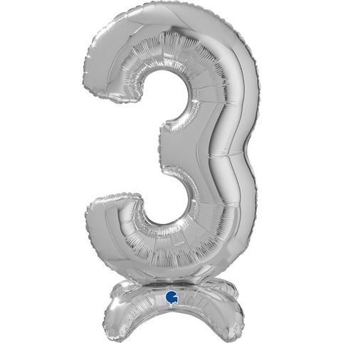 ČÍSLICE STOJÍCÍ STŘÍBRNÁ 3 (64cm,25") (balónek číslice)