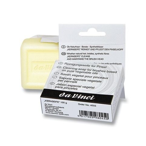 Mýdlo na štětce s rekondičním a dezinfekčním efektem na bázi čistých rostlinných olejů. Mýdlo čistí a udržuje přírodní vlas nebo štětiny, ale i syntetická vlákna, elastická a jemná. Vodou ředitelné a akrylové barvy omyjte vodou a čistícím mýdlem ještě před zaschnutím barvy. Pokud jsou akrylové barvy zaschlé, použijte příslušné ředidlo a teprve potom čistící mýdlo. Stejně postupujte i po použití jiných typů rozpouštědel podle typu barvy (terpentýn, aceton atd.). Po pečlivém použití mýdla a vymytí všech zbytků barvy štětec osušte a uhlaďte do příslušného tvaru a nechte zvolna při pokojové teplotě vyschnout. Mýdlo je baleno v krabičce z kartonu, 100 g.