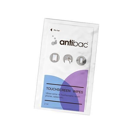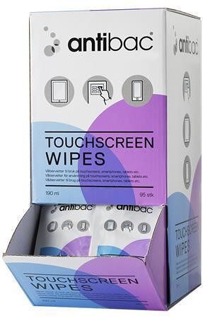 Jednorázové utěrky na dotykové displeje ANTIBAC pomáhají udržovat dotykové obrazovky bez nečistot a mastnoty.