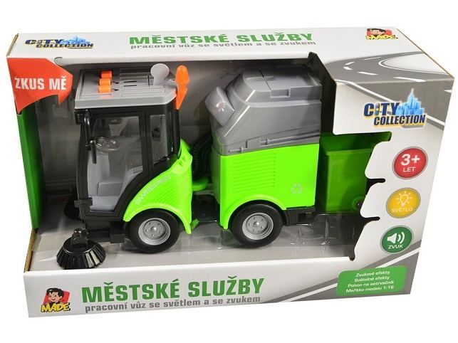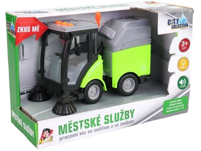 Čistící autíčko je na setrvačník . Díky reálnému vzhledu si každý toto autíčko rychle oblíbí. Součástí balení je i popelnice. Hračka je určena pro děti 3+. Rozměr hračky je 19 cm. Materiál hračky je plast.