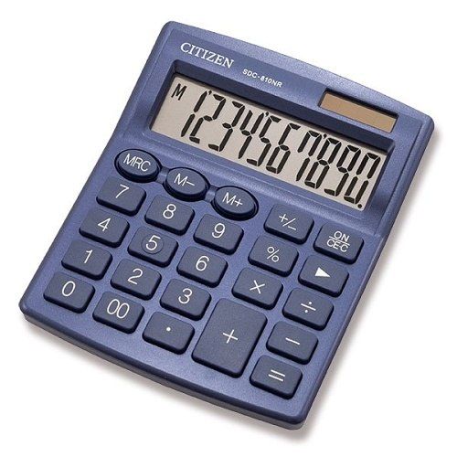 Kompaktní stolní kalkulátor se základními funkcemi s 10místným mírně nakloněným displejem.