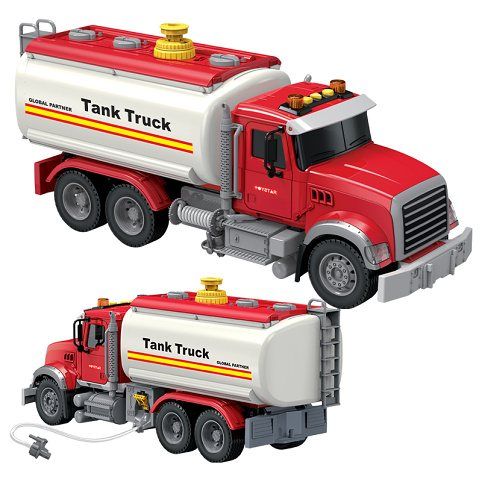 AUTOCISTERNA S FUNKCÍ AIR PUMP (setrvačník) - tlačítka pro zvukové a světelné efekty, jízda vpřed na setrvačník, pohyblivé části vozu a funkce vzduchové pumpy - hasiči a autocisterna s nádrží na vodu a funkční hadicí Instalace baterií: Odstraňte