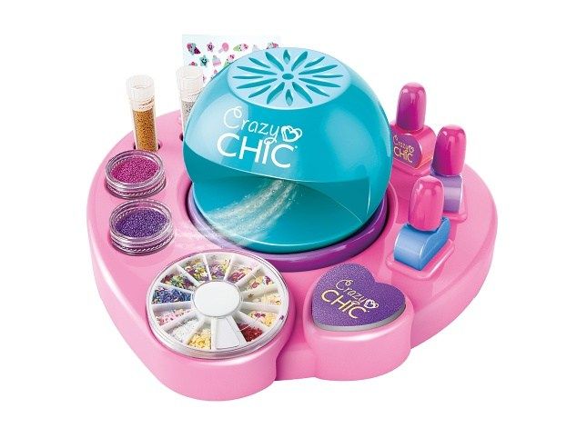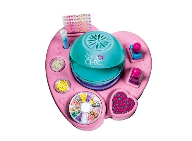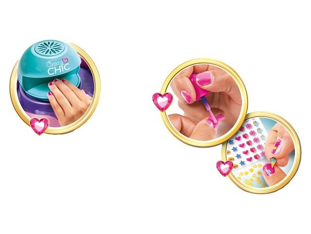 Nehtové studio pro všechna parádnice. Obsahuje sušič nehtů, třpytivý lak na nehty, ozdobné nálepky, korálky, třpytky. Vyžaduje 2x 1,5 V AA baterie, které nejsou součástí balení.