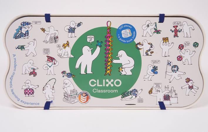 CLIXO Classroom - 100 kusů je flexibilní, velmi lehká, magnetická stavebnice v různobarevné kombinaci, která je inspirována origami a zároveň je to skvělá Montessori hračka. Tato stavebnice je založena na principu spojování různých tvarů a dílků přichycením červených a modrých magnetů k sobě. Sada Classroom je nejnovějším produktem Clixo obsahující také průvodce pro pedagogy a 30 karet s nápady na aktivity. Umožňuje vytvářet architektonické stavby, vědecké modely – např. molekuly, atomy nebo planetární soustavy. Umělecky zaměřeným dětem umožní vytvářet abstraktní obrazy, sochy a kreativní děti si mohou vytvářet své vlastní hračky nebo herní plochy pro stolní hry. Inspirace pro různé stavby naleznete na papírovém balení, jež tvoří obal výrobku. V tomto zázračném balení se skrývá svět zábavných objevů!