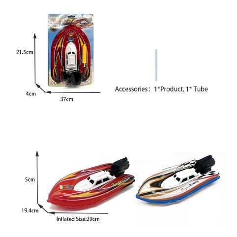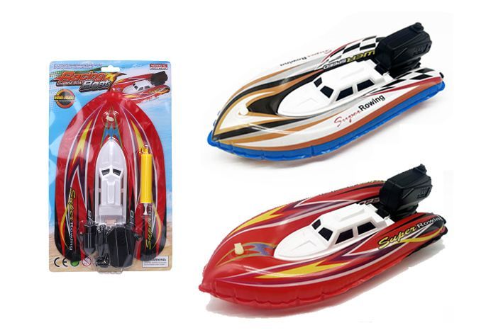 Člun nafukovací. Rozměry 21,5x3x37 cm. Součástí pumpa. 2 varianty - červená, modrá. 3xAA baterie nejsou součástí.