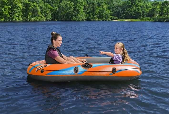 Nafouknutá velikost: 196 × 106 × 31 cm. Maximální nosnost: 120 kg. 3 vzduchové komory. Vyrobeno z odolného PVC. Pro 1 dospělou osobu + dítě. Součástí balení vesla a ruční pumpa. Obvodové zajišťovací vedení s kabelovými průchodkami, nafukovací podlaha pro větší pohodlí, rychloupínací ventily, bezpečnostní ventil, opravná záplata součástí balení.