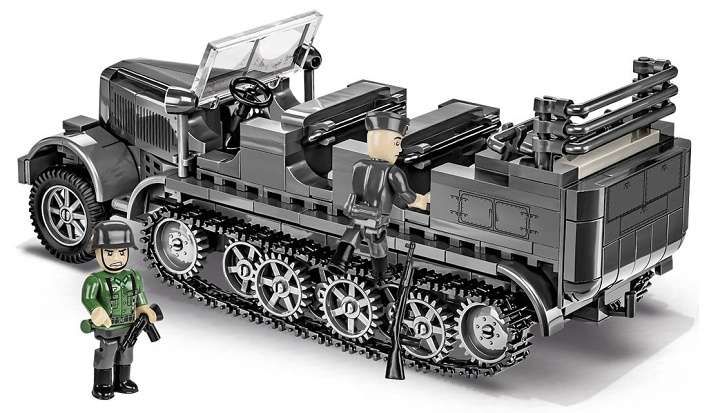 Sd.Kfz.7 byl německý dělostřelecký tahač vyráběný v letech 1934 - 1945. Celkem bylo vyrobeno něco málo přes 12 000 kusů. Na univerzálním podvozku tohoto vozidla bylo postaveno mnoho typů vozidel pro jiné účely (obrněná kabinová verze, velitelská vozidla, pozorovací vozidla, samohybná protiletadlová děla). V základní verzi tahač uvezl až 12 osob. Sada obsahuje dvě figurky: vojáka Luftwaffe a vojáka pěchoty Wehrmachtu. Sada obsahuje 439 kostek stavebnice a 2 figurky vojáků.