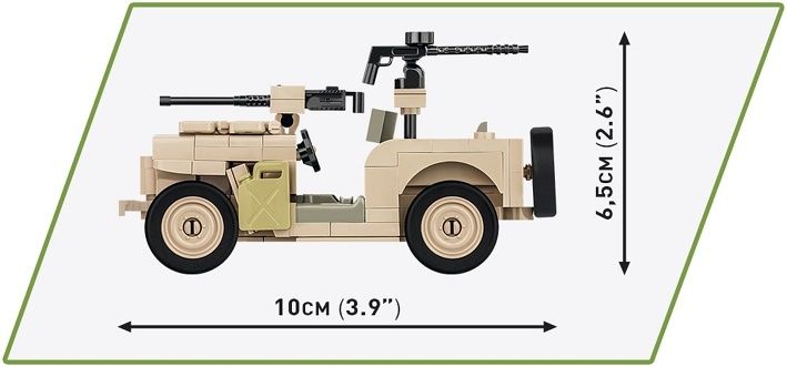 Postavte si model Willys . Licencovaný Willys Jeep byl vydán v barvách britských jednotek SAS. Světově nejoblíbenější terénní vozidlo z druhé světové války.Prezentovaný model se výrazně liší od těch ve výzbroji americké armády. Co opravdu upoutá, je velmi charakteristická vykrojená mřížka vozu s kondenzátorem vedle. Tato úprava továrního vozu umožňuje provoz v těžkých pouštních podmínkách, kde se velmi snadno přehřeje! Balení obsahuje 180 kostek a 3 figurky.