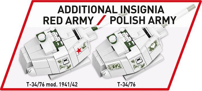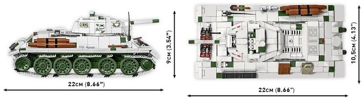 Postavte si model Tank T-34/76, známý také jednoduše jako T-34, je jedním z nejdůležitějších tanků v historii, který sehrál klíčovou roli během druhé světové války. Ve 30. letech začali sovětští inženýři pracovat na novém středním tanku, který měl nahradit starší modely T-26 a BT-7. V roce 1939 vznikly prototypy označené A-20 a A-32. Konečný model, A-34, se stal základem pro sériovou výrobu a dostal název T-34. Prototypy T-34 prošly intenzivním testováním a v roce 1940 začala sériová výroba v Charkově. První modely měly 76,2 mm kanón L-11, který byl rychle nahrazen účinnějším kanónem F-34. T-34 poprvé viděl boj během německé invaze do Sovětského svazu v červnu 1941. Navzdory počátečním logistickým a výcvikovým problémům se T-34 ukázal být na bojišti mimořádně účinný. Jeho šikmý pancíř, dobrá pohyblivost a silná výzbroj z něj dělaly protivníka, se kterým měly německé tanky vážné problémy. Tanky T-34 našly místo také u 1. varšavského tankového pluku, který byl součástí 1. pěší divize Tadeusze Kościuszka. Tanky T-34 s bílou orlicí namalovanou na věži bojovaly mj. u Lenina nebo na předmostí Warecko-Magnuszewski. Balení obsahuje 852 kostek a 1 figurka.