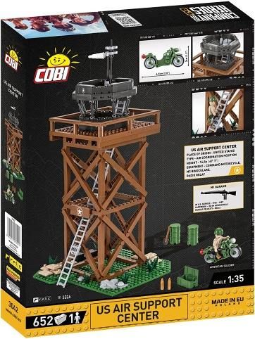 US Air Support Center je obrovská stavba skládající se z 652 kostek stavebnice. Je postavena v měřítku 1:35. Ve hře hraje důležitou roli ve struktuře americké základny. Postavte si skvělou leteckou řídící věž pro své letiště a pozorovací místo! Výška věže je 38 cm! Sada obsahuje figurku amerického vojáka na motorce a doplňky jako střelivo, bednu, lopatku, sudy a pytle s pískem. Figurka i kostky stavebnice mají vysoce kvalitní potisky, které se neopotřebovávají ani při intenzivním používání!