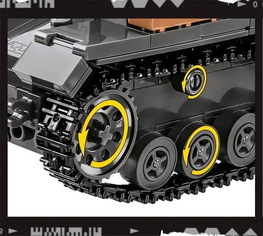 Tank Panzer IV je vybaven funkční pásovou trakcí, pohyblivou věží, pohyblivou hlavní a otevíracím poklopem. Pod servisním poklopem, který lze otevřít, najdete maketu motoru! Sada obsahuje figurku německého tankisty s čepicí lodičkou s potiskem, sluchátky, dalekohledem a osobní pistolí Parabellum. Sestavený model tanku měří 19 x 8 cm. Balení obsahuje 610 kostek stavebnice a figurku vojáka.