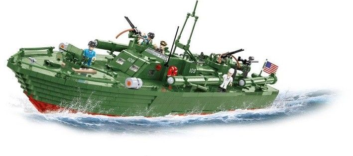 Americký hlídkový člun PT 109 je největším a nejdetailnějším modelem v historii Cobi! Z rekordních 3 726 kostek stavebnice postavíte realistický model v měřítku 1:35. Sestavený model je 72 cm dlouhý a vystavit ho můžete na přiložený stojánek s názvem lodi. Tento set je unikátní, protože je v měřítku a zároveň obsahuje figurky. Balení obsahuje 3 726 kostek stavebnice a 4 figurky námořníků.