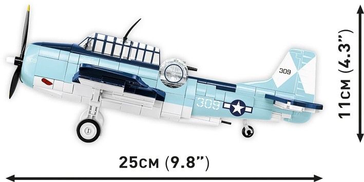 Postavte si model North American TBF Avenger, americký palubní torpédový bombardér používaný především během 2. světové války. TBF Avenger, navržený Grumman Aircraft Engineering Corporation, byl klíčovým prvkem amerického námořního letectva během bojů v Pacifiku. Letoun vstoupil do služby v roce 1942 a sloužil k útokům na hladinové cíle, zejména nepřátelské lodě. Jeho tříčlenná posádka se skládala z pilota, střelce a operátora. TBF Avenger byl vyzbrojen kulometem a mohl nést torpéda, bomby a rakety. Jeho účast v bitvě u Midway v roce 1942 byla zásadní pro úspěch amerického námořního letectva. Po skončení 2. světové války byl TBF Avenger postupně nahrazován novějšími konstrukcemi, ale zůstal v provozu až do 60. let. Tento letoun se proslavil jako spolehlivý bojový stroj, schopný přežít i těžké poškození a vrátit se na letadlovou loď! Balení obsahuje 392 kostek stavebnice a 1 figurku pilota.