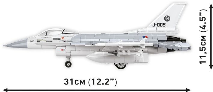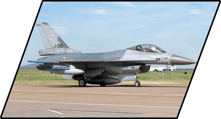 Postavte si model F-16 Fighting Falcon, víceúčelový letoun navržený americkou společností General Dynamics. Od roku 1993 jej vyrábí obranný megakoncern Lockheed Martin. Používají ho vzdušné síly desítek zemí světa. AM verze F-16 se vyráběla v Evropě na jedné z výrobních linek General Dynamics. Z 425 kvalitních kostek stavebnice postavíte světově nejoblíbenější licencovaný stíhací a útočný letoun F-16® AM FIGHTING FALCON® v holandských barvách (Dutch Air Force). Sada byla pečlivě navržena v měřítku 1:48. Letoun má zavěšené výkonné střely AIM-9 SIDEWINDER a AIM-120 AMRAM. Výzbroj je odnímatelná a lze ji libovolně konfigurovat nebo umístit na jiná letadla z kolekce Armed Forces! Sada obsahuje figurku holandského pilota vybavenou helmou a kyslíkovou maskou s hadicí. Povšimněte si takových detailů jako např. nášivky nizozemského letectva na pilotově uniformě. Součástí balení je stojánek na vystavení modelu s plaketou obsahující název setu, státní vlajku a logo Lockheed Martin. Balení obsahuje 425 kostek stavebnice a 1 figurku pilota.