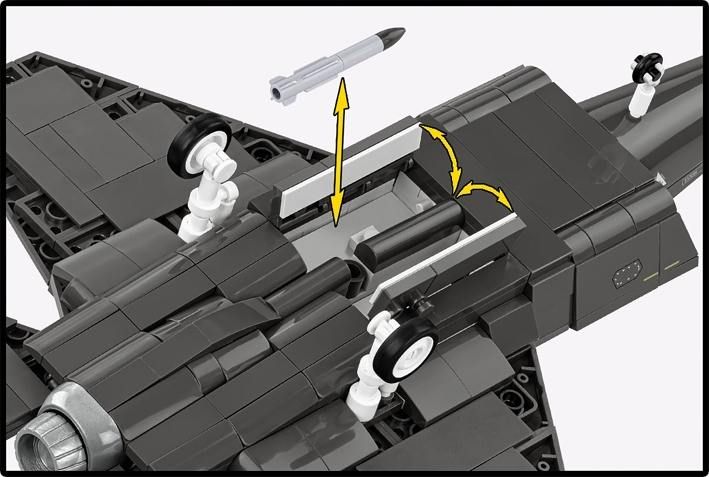 • Podkřídlová výzbroj – sada obsahuje realisticky reprodukované rakety a bomby, které lze snadno vkládat a vyjímat z pumovnice, a prezentovat tak letadlo v bojové i neutrální konfiguraci. Tento detail nejen zvyšuje vizuální atraktivitu modelu, ale také umožňuje jeho úpravy.