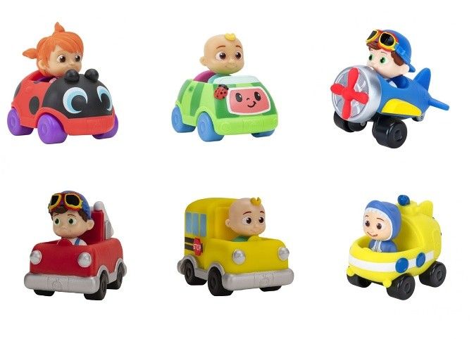 Nádherná Cocomelon autíčka s figurkou, 9x6x8 cm, vhodné i pro menší děti. Nelze vybrat druh, dodáváme dle skladové dostupnosti.