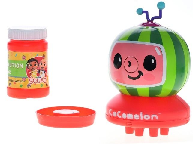 Cocomelon bublifukovač ve tvaru Melon TV 11cm na baterie s náplní 60ml v krabičce