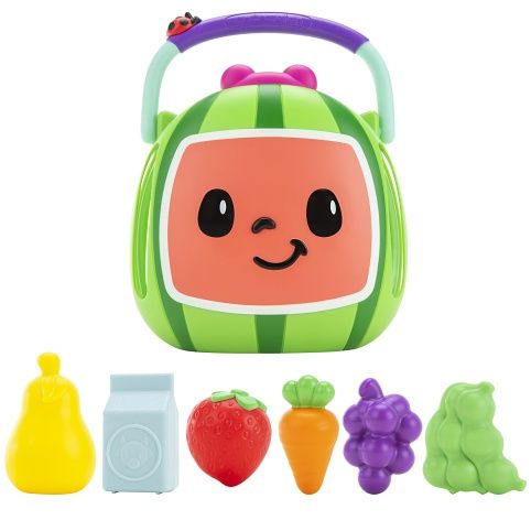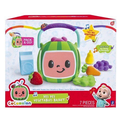 Luxusní set CoComelon nákupního košíku plného zeleninky a ovoce z nejúspěšnější série dětských naučných videí na YouTube je tady!CoComelon Yes, yes vegetables košík hraje oblíbenou píseň v anglickém jazyce YES, YES VEGTABLES SONG. Kromě písně dává košík dětem úkoly na hádání, barvy a správné zatřídění ovoce nebo zeleniny.Hrajte si a zpívejte s dětským CoComelon košíkem! Vaše děti si budou hrát a poznají různé druhy ovoce a zeleniny, které jsou součástí košíku. A když skončí s hraním nebo si chtějí přenést košík na cesty, ovoce a zelenina se do košíku perfektně vejdou!Stisknutím nosu košíku si poslechnou svoji oblíbenou píseň CoComelon, „Yes Yes Vegetables“ a další zábavné zvuky, které milují.ry na hraní rolí pomáhají při vývoji dětské představivosti, aktivity a dovednosti, kterou je důležité rozvíjet během formačního období. Inspirujte a rozvíjejte představivost svých nejmenších se sadou malých kuchyňských rolí CoComelon Deluxe!