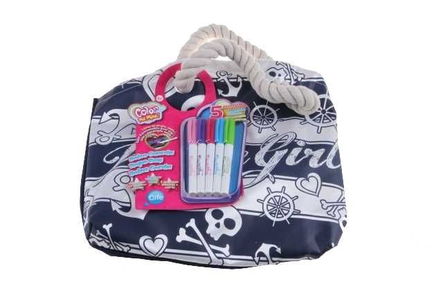 Vybarvi si kabelku dle svých představ! Součástí balení je 5 fix a taška na vybarvení. Pro nejlepší výsledek si nejdříve promysli, jak kabelku vybarvíš! Zkus jednotlivé fixy na jiné tkanině, ať vidíš, jak asi budou na kabelce vypadat. Poté si ji vybarvi a ukaž kamarádkám kabelku svých snů. Barvy jsou nesmyvatelné.