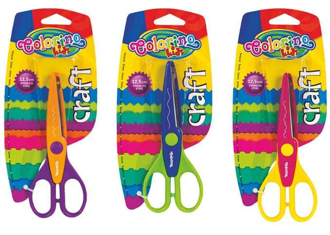Dětské nůžky Colorino Craft. 6 různých drůhu ostří pro různé tvary střihu.