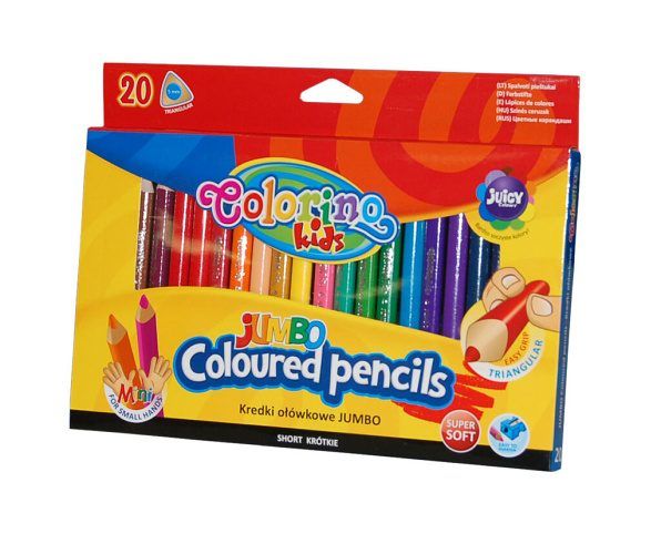Trojhranné pastelky 20ks. Mini Jumbo (6,5 cm) s ořezávátkem.