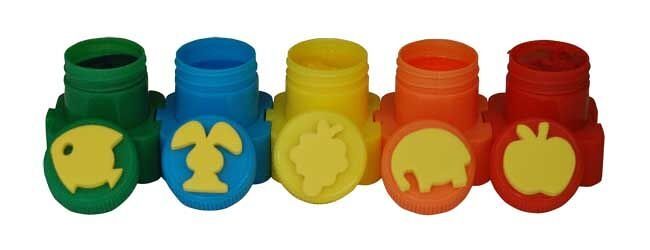 Prstové barvy s razítkem mix 5 barev po 20ml.