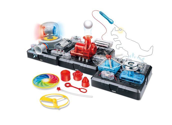 Elektrický vědecký set. Vzdělávací vědecká stavebnice. 7 elektrických modulů, které lze propojovat do složitějších zařízení. Více než 100 experimentů. Světelné a zvukové efekty. Baterie 6xAA, nejsou součástí.