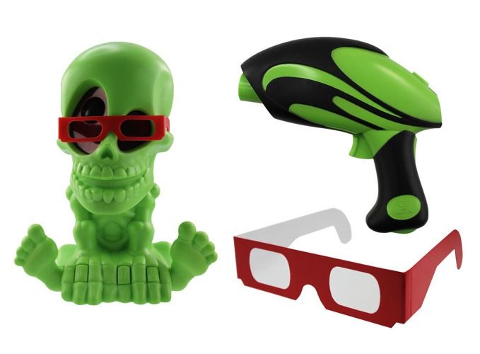 Balení obsahuje: pistoli, kostlivce, 3D brýle a návod.