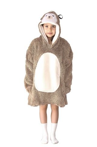 Velká mikina s kapucí s motivem zvířátka, která plní funkci teploučké, měkoučké a nadýchané deky, která zahřeje při každé příležitosti a navíc děti potěší svým hravým a líbivým designem. Vnitřek mikiny byl vyroben z hřejivého nadýchaného sherpa fleecu a lícová strana ze super měkkého hebkého materiálu, používaného na výrobu těch nejměkčích dek. Všechny mikiny z této řady mají i velikou přední kapsu, ve které se dají krásně ohřát studené ruce. Každé dítě se v ní bude jistě cítit pohodlně, ať už doma na gauči při sledování televize nebo odpočinku, nebo jen tak při hraní si, kdy ho nijak nebude omezovat v pohybu. Velmi praktická je ale i při stanování či jiných outdoorových aktivitách nebo jen tak při venkovním posezení na zahradě v chladnějším počasí. Tato mikina a deka v jednom je krásným a praktickým dárkem. V nabídce Cozy Noxxiez najdete v mnoha případech ve stejném designu i hřejivý plyšový polštář 3 v 1, obří hřejivý pantofel, nebo hřejivou deku s kapucí se zvířátkem a tlapkovými kapsami a můžete mít tak celou zahřívací sadu perfektně sladěnou.