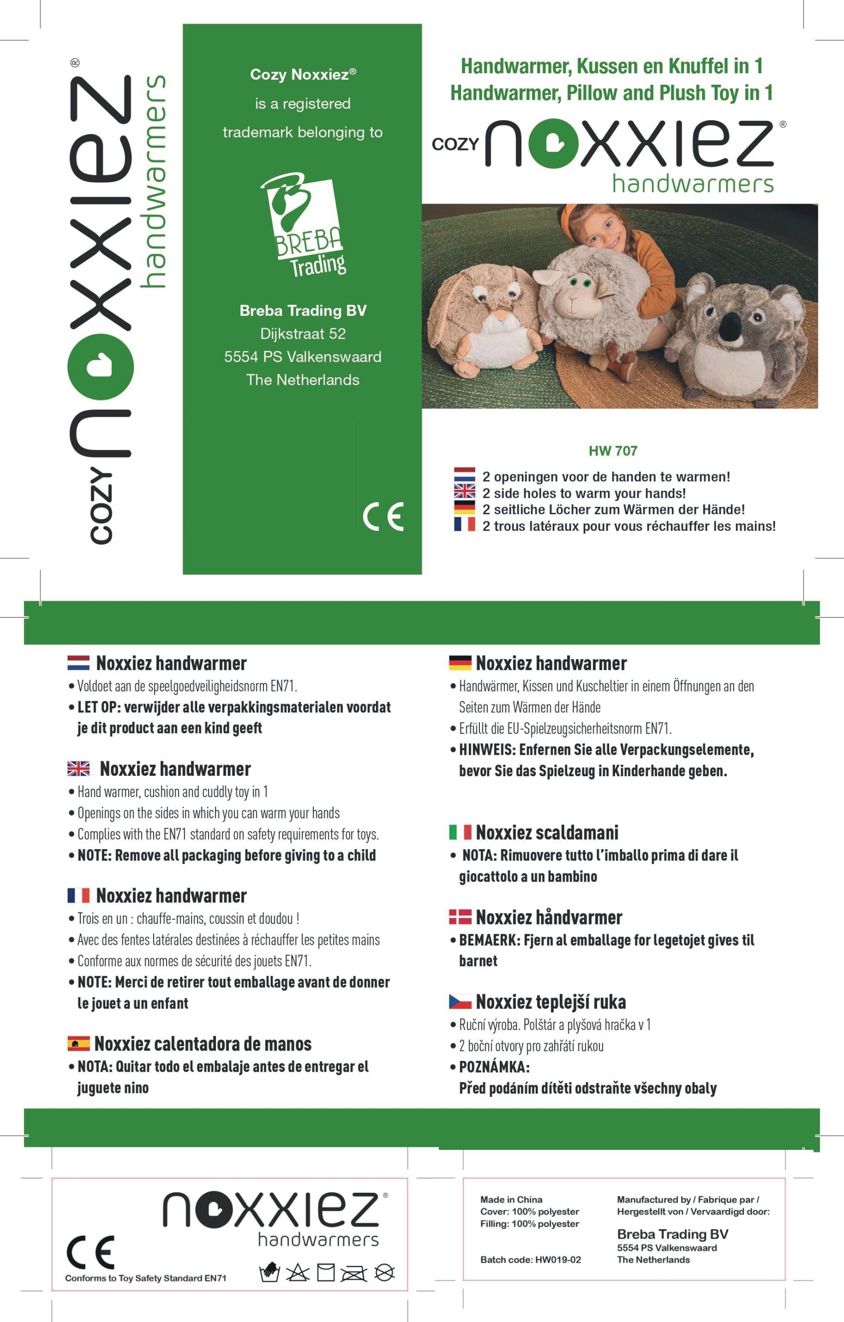 Měkoučký polštář, rukávník na ohřátí rukou nebo věrný kamarád plyšák? To vše najdete v jednom. Tento nápaditý polštář se zvířátkem se stane velmi rychle nejlepším kamarádem každého dítěte. Navíc je pro děti opravdu ideálním společníkem na cestách v autě, letadle, vlaku, ale i krásným dekoračním doplňkem každého dětského pokojíku. Každý polštář z této řady slouží jako ohřívač rukou, protože má po stranách 2 otvory. Stačí jen vložit ruce dovnitř a za chvilku jsou teplé. Navíc zmíněné boční otvory mohou sloužit i jako dokonalá tajná skrýš, kam se dá ledacos schovat, což děti přímo milují. Tato produktová řada nabízí polštáře s mnoha motivy zvířátek a několik i s motivem ovoce, takže každý malý člen rodiny může mít svého oblíbeného mazlíčka. V nabídce Cozy Noxxiez najdete v mnoha případech i obří hřejivý pantofel nebo deku s kapucí a kapsami s motivem stejného zvířátka a můžete mít tak celou zahřívací sadu ve stejném designu. V roce 2023 přibyly v nabídce, jako úplná novinka, i televizní mikinové deky pro děti ve věku 3 - 6 let a 7 - 12 let, které také tematicky patří k některým kolekcím. Stručný popis a doplňující informace:• Super měkký a příjemný materiál• Slouží jako rukávník k ohřívání rukou (po stranách jsou dva otvory)• Ideální pro cestování• Velikost 35 cm x 35 cm x 35 cm • Materiál: 100% polyester• Ruční praní, sušit vyvěšením• Věk: certifikováno od 0 měsíců• Navrženo v Nizozemí