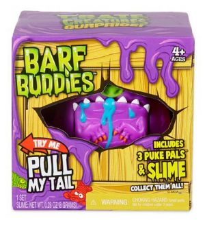 Zatahejte Barf Buddies za ocas, bude vydávat zvuky a zvracet sliz a další příslušenství. 5 jedinečných postav, z nichž každá má vlastní příslušenství a sliz. Nabíjejte Barf Buddies slizem a dalším příslušenstvím, abyste jím pobavili své přátelé a rodinu znovu a znovu.