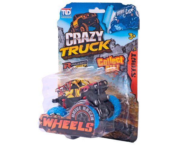 Crazy Truck buggy 9cm na setrvačník velká kola 4barvy na kartě