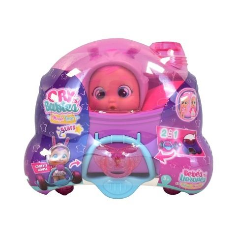 Cry Babies Magic Tears Stars Domeček Coney je interaktivní hračka zaměřená na malé děti od tří let, která kombinuje panenku s domečkem plným překvapení. Panenka Coney je oblečena v růžovém silikonovém oblečku s kapucí, který jí dodává roztomilý a jedinečný vzhled. Panenka má velké výrazné oči a realistické detaily obličeje, které zvyšují její autentický dojem. Domeček je navržen v purpurových a růžových tónech s průhlednou částí, která umožňuje nahlédnout na panenku uvnitř, což dětem umožňuje snadno udržet kontakt s hračkou během hry. Hlavní funkcí této sady je možnost krmení panenky pomocí přiložené lahvičky naplněné vodou. Po napití panenka začne plakat skutečné slzy, které jsou viditelné díky průhlednému materiálu domečku. Tento prvek přidává hře na realističnosti a podporuje péči a empatii u malých dětí. K uklidnění panenky slouží dudlík a plenka, které jsou součástí příslušenství. Stisknutím bříška panenky lze aktivovat pláč a následné utěšení. Domeček Coney obsahuje také řadu tajných místností a skrytých prostor, které děti mohou objevovat, což podporuje kreativitu a objevování během hry. Součástí balení je kromě panenky Coney také mazlíček, silikonový oblek s kuklou, lahvička, dudlík, samolepky, hvězdička a doplňky určené například pro segway, které rozšiřují možnosti hry a činí ji pestřejší. Celá sada je zabalena v atraktivním balení ve tvaru domečku, které je zároveň praktické pro přenášení a skladování. Tato hračka patří do kategorie módních panenek a figurek s doplňky, přičemž klade důraz na interaktivitu a rozvoj sociálních dovedností dětí. Kombinace roztomilého designu, funkčních prvků a bohatého příslušenství činí z Cry Babies Magic Tears Stars Domeček Coney zajímavou volbu pro rodiče hledající hračku, která nabízí nejen zábavu, ale i rozvoj emocí a péče.