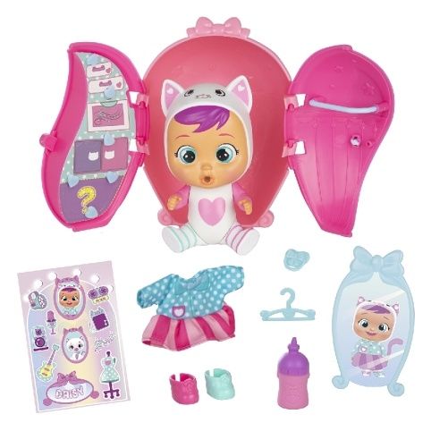 Zcela nová speciálí edice panenek Cry Babies Magic Tears. Balení obsahuje 8 překvapení: panenku, 1 oblečení, pár bot, 4 doplňky co by překvapení a list s nálepkami. Panenka roní čiré slzy bez zabarvení.