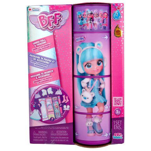 Seznamte se s novými BFF – nejlepšími kamarádkami! Nyní tvoje oblíbené postavy z Cry Babies Magic Tears vyrostly a jsou z nich teenageři! Je jim 13 let a čeká je mnoho dobrodružství. V kolekci je k dispozici 6 panenek, z nichž každá je stylově oblečená v souladu s nejnovějšími módními trendy. Jsou 20 cm vysoké s barevnými vlasy, křišťálovýma očima a plně pohyblivým tělem. Která z nich se stane tvojí BFF? Rozbal a objev jejich šatník s více než 9 překvapeními: 2 kusy oblečení, taška, čelenka nebo klobouk, pár bot s ponožkami a náhrdelník! BFF panenky mají hedvábné nylonové vlasy a skutečné módní oblečení! Každá panenka je zabalena v jedinečné krabičce, která je zároveň její šatníkem! Otáčej 3 dílky tuby, a objev jaké pózy zvládne právě tvoje BFF. Panenky Cry Babies jsou hlavními hrdiny 13dílného seriálu Cry Babies BFF dostupného na YouTube kanálu Kitoons.Kristal má stylové modré vlasy ve vysokém culíku, křišťálové oči a pohyblivé tělo! Nosí trendy outfit a speciální náhrdelník – modré šaty, modré metalické vysokoškolské sako, vysoké ponožky a kozačky! Doplň jí kabelkou inspirovanou ledním medvědem a rozkošnou čelenkou s ledním medvědem a náhrdelníkem BFF.Cry Babies BFF jsou perfektní dárek pro dívky od 4 let! Darujte BFF jako dárek k narozeninám nebo k jakékoli jiné příležitosti!Speciální funkce:- postavy známé ze světa Cry Babies- Produkty Cry Babies rostou s dětmi - BFF jsou určeny pro dívky 4+- balení je nedílnou součástí zábavy - je to šatník!- 9 překvapivých doplňků k obj