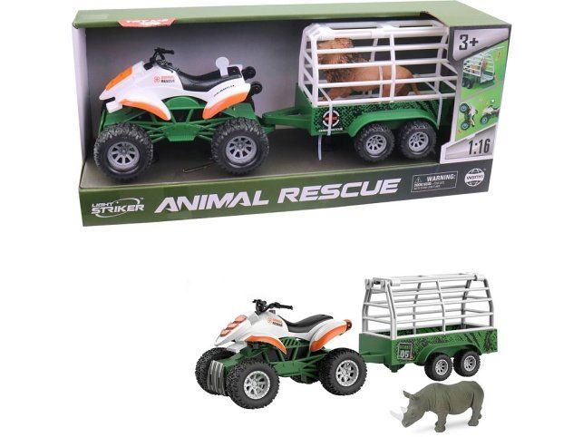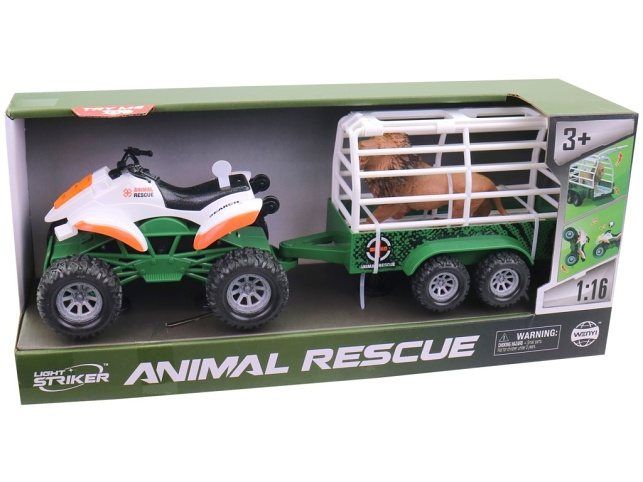 Čtyřkolka s přívěsem a zvířetem na setrvačník, světlo, zvuk, 37,5 x 11,3 x13,2 cm