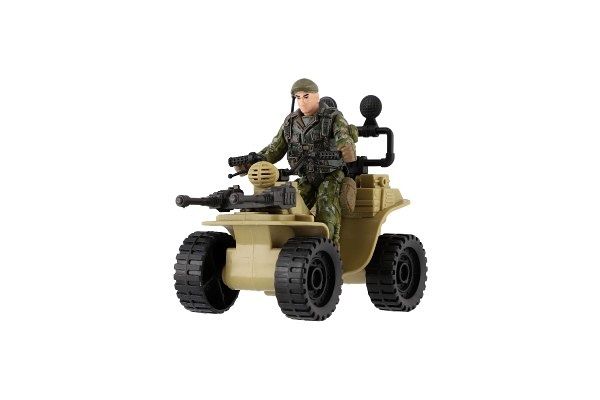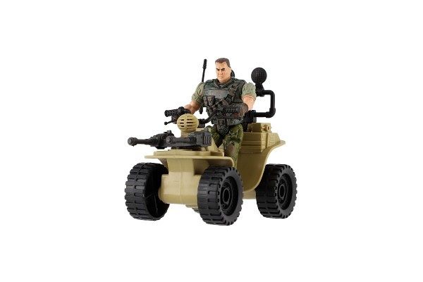 Čtyřkolka s vojákem plast 14cm na volný chod 4 druhy