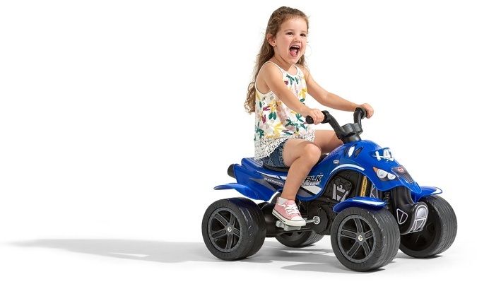 Čtyrkolka šlapací Falk racing team modrá. Z vysoce odolného a kvalitního plastu. Velikost 84×50×56 cm. Věk 3+. Všechny traktory Falk jsou testovány na 50kg – dle požadavků evropských norem.