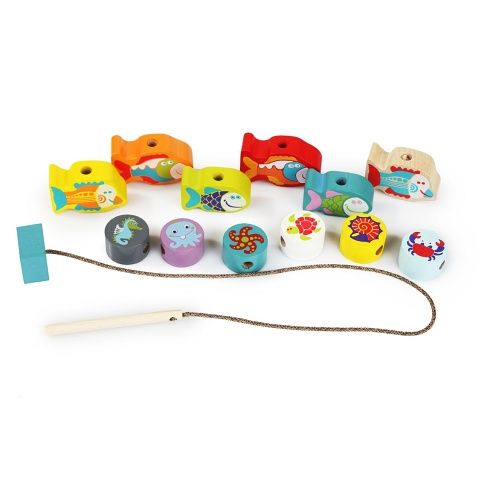 CUBIKA 13647 Navlékací ryby a mořští živočichové - navlékací set - 13 dřevěných dílů a 8 p