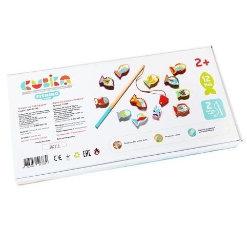 CUBIKA je nová značka dřevěných hraček vyrobených pouze z ekologicky pěstovaného dřeva s velmi precizním opracováním a líbivým designem. Rybolov je známá hra pro děti, jejímž cílem je vylovit co nejrychleji nejvíce rybiček z rybníka. K tomu slouží dva pevné dřevěné pruty opatřené na svých koncích magnetem, protože každá rybička má v sobě zabudovaný kovový plíšek. Rybky pak vyskakují z vody jako živé. Sortiment hraček značky CUBIKA pomáhá dětem rozvíjet především senzomotorické schopnosti a dovednosti, logické myšlení, kreativitu, představivost a různé poznávací znalosti. Hračky jsou vyrobeny z nejkvalitnějšího javoru a buku a k barvení se používají též vysoce kvalitní barvy na vodní bázi, které jsou naprosto bezpečné pro děti a nemají žádný zápach. Všechny výrobky této značky mají německý certifikát TÜV a jsou vyrobeny dle evropské normy pro bezpečnost hraček EN 71. Nevhodné pro děti do 2 let. Vyrobeno v Evropě.