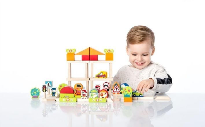 CUBIKA je nová značka dřevěných hraček vyrobených pouze z ekologicky pěstovaného dřeva s velmi precizním opracováním a líbivým designem. Stavebnice pro kluky Doprava ve městě obsahuje 55 dřevěných hracích kostek, ze kterých lze postavit garáže a rušné město plné aut. Nechybí ani dopravní značky, semafor a benzinová stanice. Kostky jsou zabalené v dárkové krabici, do které lze po hře vše snadno uklidit. Tvarově jsou kostky ideální především pro stavbu domů, mostů a různých věží dle vlastní fantazie. Sortiment hraček značky CUBIKA pomáhá dětem rozvíjet především senzomotorické schopnosti a dovednosti, logické myšlení, kreativitu, představivost a různé poznávací znalosti. Hračky jsou vyrobeny z nejkvalitnějšího javoru a buku a k barvení se používají též vysoce kvalitní barvy na vodní bázi, které jsou naprosto bezpečné pro děti a nemají žádný zápach. Všechny výrobky této značky mají německý certifikát TÜV a jsou vyrobeny dle evropské normy pro bezpečnost hraček EN 71. Nevhodné pro děti do 2 let. Vyrobeno v Evropě.