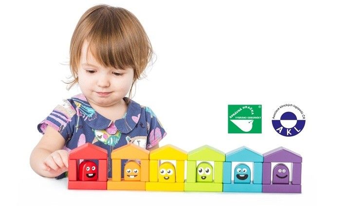 CUBIKA je nová značka dřevěných hraček vyrobených pouze z ekologicky pěstovaného dřeva s velmi precizním opracováním a líbivým designem. Dřevěná stavebnice se 30 barevnými prvky včetně kostiček s emotikony nabízí mnoho zábavy. Každý z šesti domečků má svého obyvatele v příslušné barvě, které je třeba správně do domečku umístit. Děti se tak formou zábavné hry učí poznávat barvy. Fantazii při stavitelské činnosti se zde však meze nekladou. Z kostiček lze hravě postavit různé architektonické komplexy. Sortiment hraček značky CUBIKA pomáhá dětem rozvíjet především senzomotorické schopnosti a dovednosti, logické myšlení, kreativitu, představivost a různé poznávací znalosti. Hračky jsou vyrobeny z nejkvalitnějšího javoru a buku a k barvení se používají též vysoce kvalitní barvy na vodní bázi, které jsou naprosto bezpečné pro děti a nemají žádný zápach. Všechny výrobky této značky mají německý certifikát TÜV a jsou vyrobeny dle evropské normy pro bezpečnost hraček EN 71. Nevhodné pro děti do 2 let. Vyrobeno v Evropě.