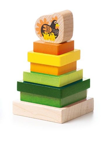 CUBIKA 15276 Barevná pyramida se slepičkou - dřevěná skládačka 8 dílů